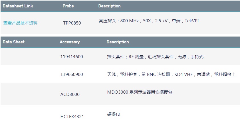 作為測量信號路徑中的關(guān)鍵元件,探頭不容忽視。在購買 MDO3000 時,您將免費獲得業(yè)內(nèi)最佳的探頭。由于擁有業(yè)內(nèi)最佳的負載 (3.9 pF) 和可匹配您示波器的高帶寬,TPP 系列探頭將是您日常使用的隨身探頭。