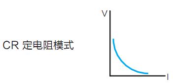 定電阻操作模式(CR):在定電阻模式下,電子負(fù)載被等效為一個(gè)恒定的電阻,電子負(fù)載會(huì)隨著輸入電壓的改變來線性改變電流。