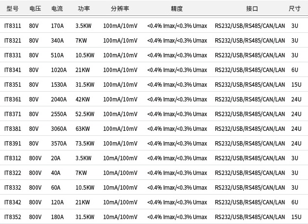 IT8300系列能量回饋式直流電子負(fù)載既能模擬各種負(fù)載特性,又能將電能無污染的回饋電網(wǎng),不但節(jié)省了用電和散熱成本,同時也符合節(jié)能環(huán)保的需求。3U體積內(nèi)可提供高達(dá)10.5kW的功率吸收,通過主從并聯(lián)和均流功能,可將功率擴(kuò)展至105kW或以上。IT8300系列可以自動檢測電網(wǎng)狀態(tài)、累計(jì)并網(wǎng)電量、提供孤島保護(hù)功能,電池測試功能、動態(tài)帶載模式以及LIST功能。內(nèi)置LAN/USB/RS232/RS485/CAN通信接口,特別適用于大功率電源、蓄電池、光伏電池、電動汽車、儲能系統(tǒng)等測試領(lǐng)域。
