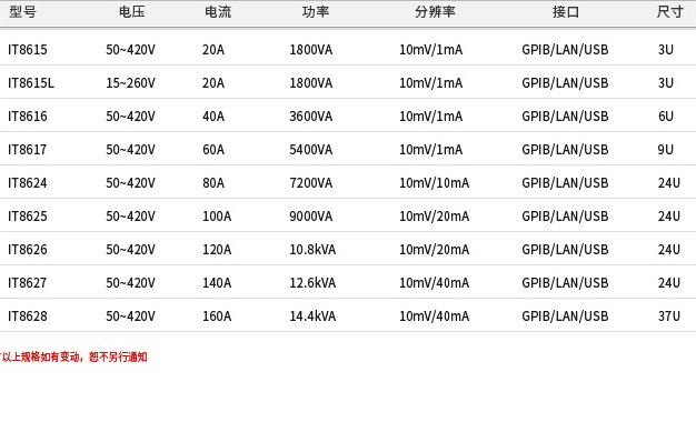 IT8600為艾德克斯最新推出的交/直流電子負(fù)載,全系列功率范圍可達(dá)14.4kVA,頻率45HZ~450HZ可調(diào)。獨(dú)有的示波器顯示功能,可顯示電壓和電流輸入波形。具有浪涌電流,峰值,有效值及PF等參數(shù)量測(cè)模式,更可量測(cè)高達(dá)50次的電壓諧波,全面分析待測(cè)物性能。內(nèi)建標(biāo)準(zhǔn)GPIB/LAN/USB通信接口,提供快速穩(wěn)定的通信質(zhì)量??捎糜诮o不斷電系統(tǒng)(UPS),逆變器,AC電源及相關(guān)交流電子元器件的測(cè)試,提供完美的解決方案。